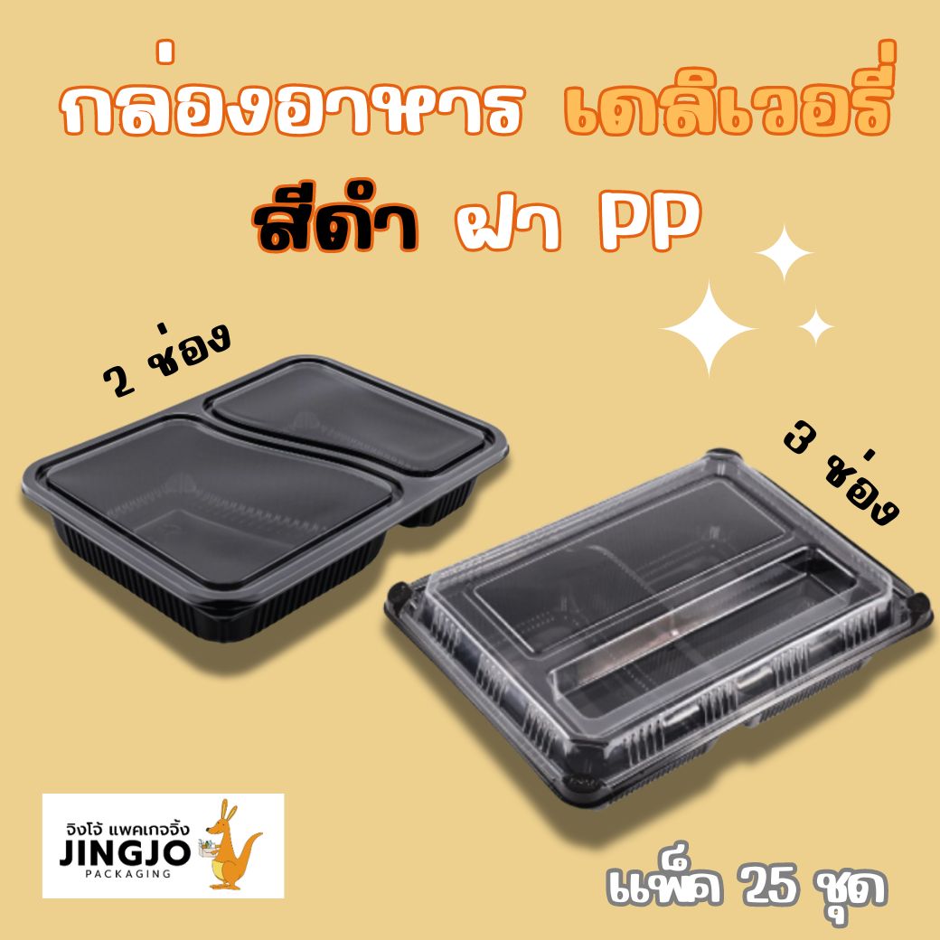 กล่องอาหาร 2 ช่องสีดำ ฝา PP
